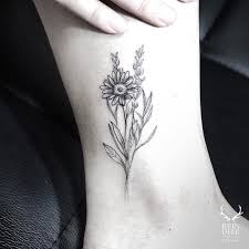 Small sunflower and lavender tattoo. Beautiful lavender tattoo on an ankle. When you decide to opt for a small tattoo there are a lot of places on your body you can decide to. Sunflower in general has a lot of meaning.
